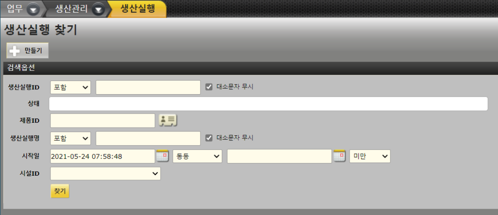 생산실행 찾기