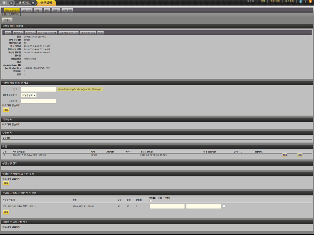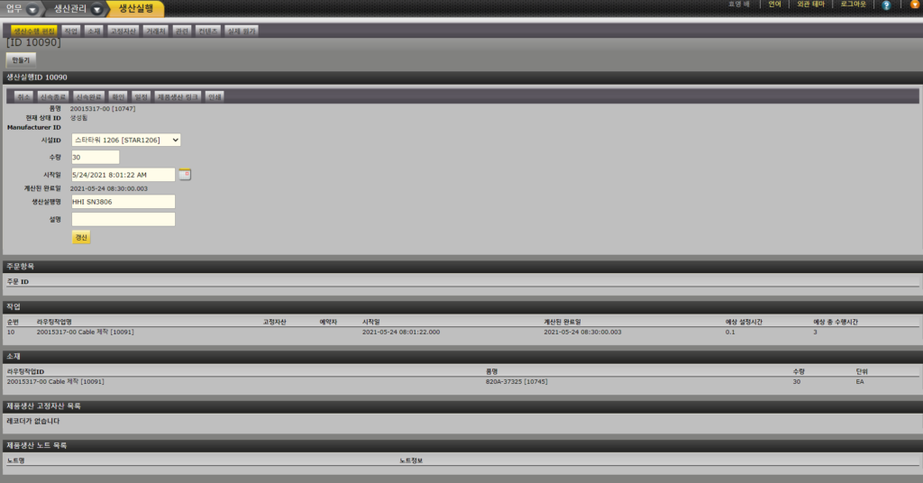 - 새 생산실행 만들기