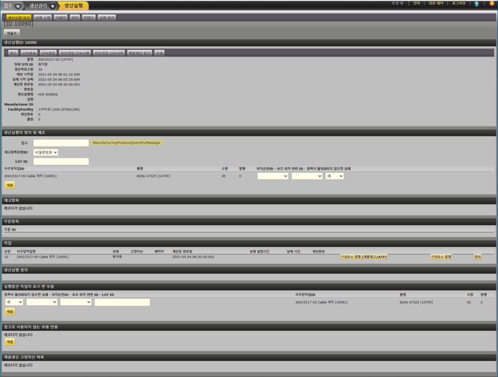 각 제조 작업, 배치 또는 실행은 생산실행을 기반으로 수행됩니다.