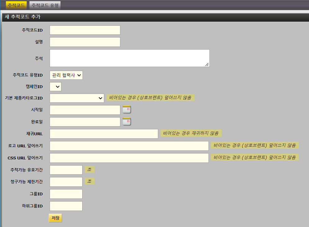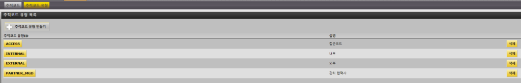 추적코드 유형은 종류별로 관리할 수 있는 분류항목입니다.