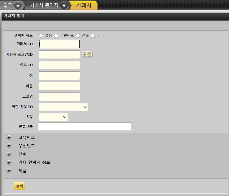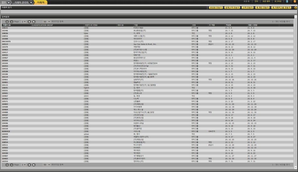 각 거래처의 역할에 따라 검색할 수 있고 유형에 따라서도 검색이 가능합니다.