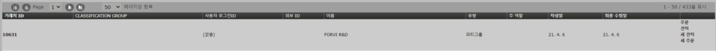검색된 거래처의 “거래처ID”에 마우스를 이동시키면 관련된 동작 메뉴가 나타납니다.