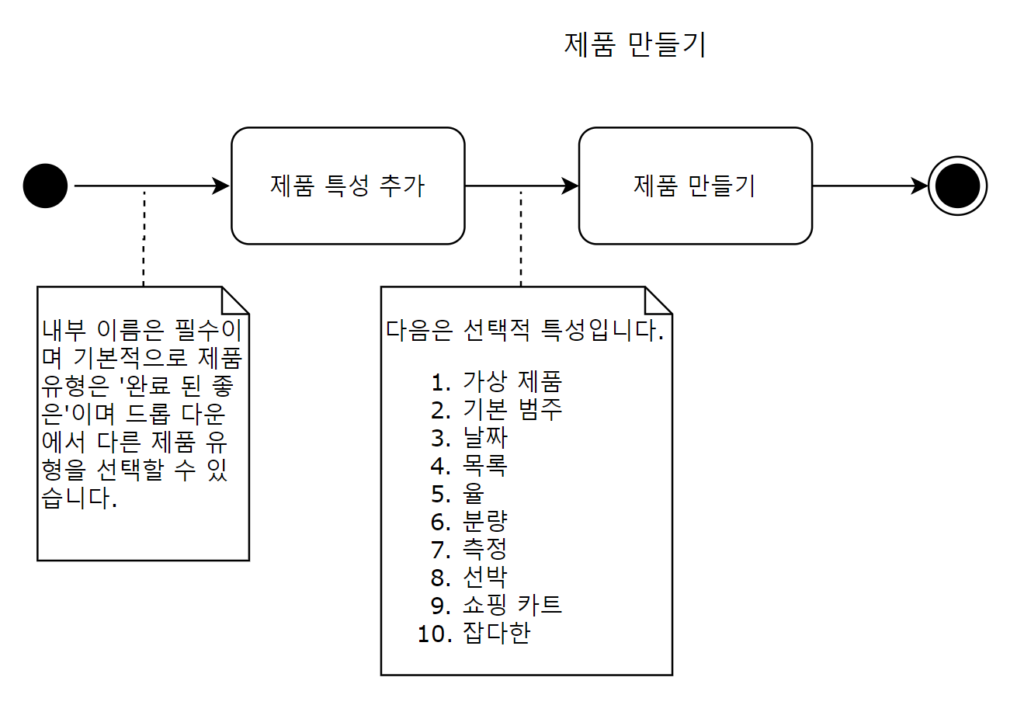 제품이 만들어지면 카테고리, 기능, 공급업체, 가격, 시설, 계약, 내용물, 재고, 위치 등을 제품과 연관시킬 수 있습니다.