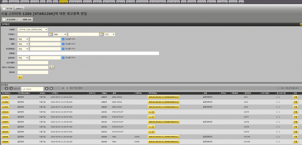 시설에 저장된 재고항목을 검색하고 관리합니다.