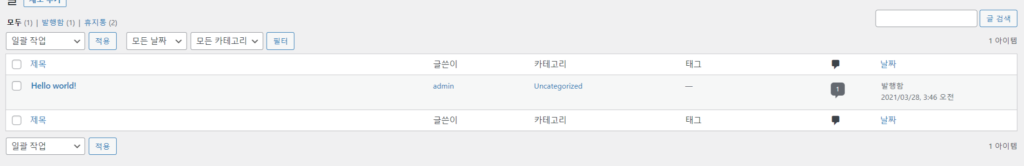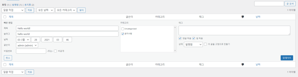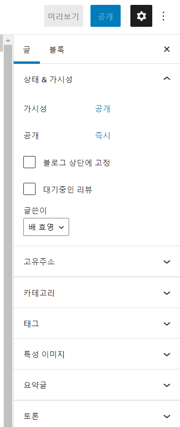 제목은 한글을 유지하고 “슬러그”로 표시된 부분을 영어로 변경하면 내용이 표시됩니다.