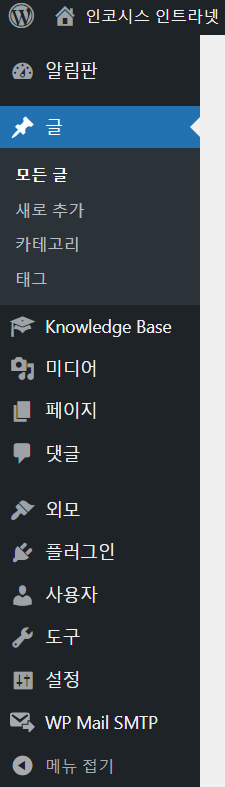 인터라넷 사용자 계정으로 로그인하면 좌측 메뉴에 “글”이 있습니다.