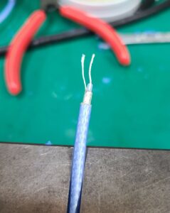 - 심선의 피복을 벗길 때에도 외선의 피복 벗긴 위치에서 1mm정도 올라온 위치에서 벗겨준다