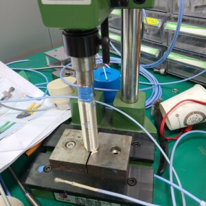 ② Coil Block을 Probe Body안에 넣어준다. 잘 안들어 가기 때문에 손으로 넣어준 후 그림4와 같이 압착기를 이용해 한번 눌러준다. 마찬가지로 튀어나오는 Ultrablue는 물티슈로 잘 닦아준다