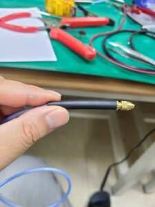 - 외선은 Probe GND로 사용하기 때문에 10가닥 정도를 남기고 다 잘라낸 후 코일의 리드선과 납땜이 가능 하도록 정리한다