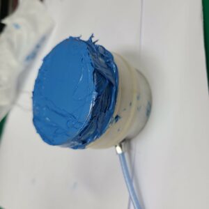 ② 손의 힘으로 결착이 불가능 하니 바이스를 이용하여 결착 해 준다. 이때 튀어나오는 Ultrablue는 물티슈로 닦아준다