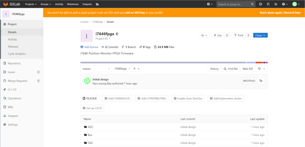 Monitor에는 FPGA, DSP Firmware가 있으며, GitLab Server에 Project Group 하위에 monitor 영역에 저장됩니다.