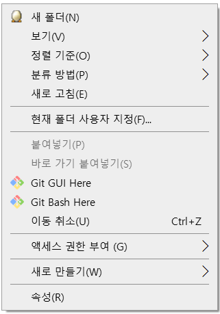 Clone이 된 폴더에서 마우스 오른쪽 버튼을 클릭하여 “Git Gui Here”를 실행하여 Commit/Branch/Merge를 수행할 수 있습니다.